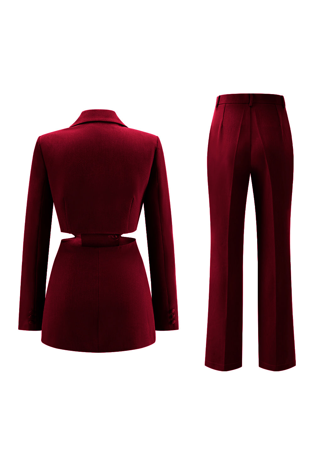 Grey Blue Notched Lapel 2 Pieces Cut Out Prom Suits