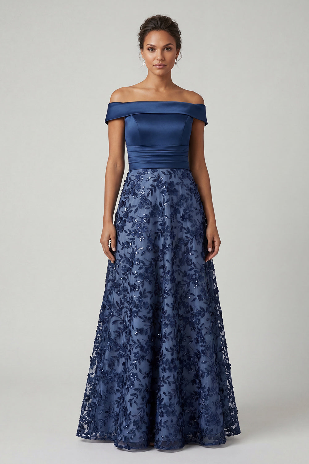 Off The Shoulder Navy Sequins A Line Long Mother of the Bride Dress