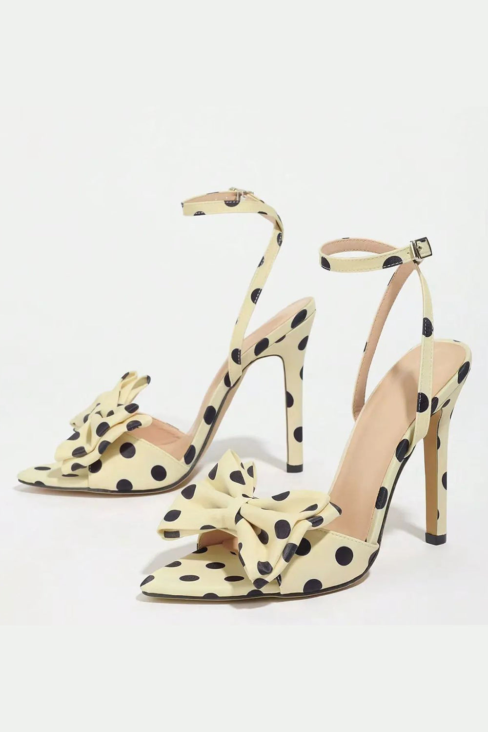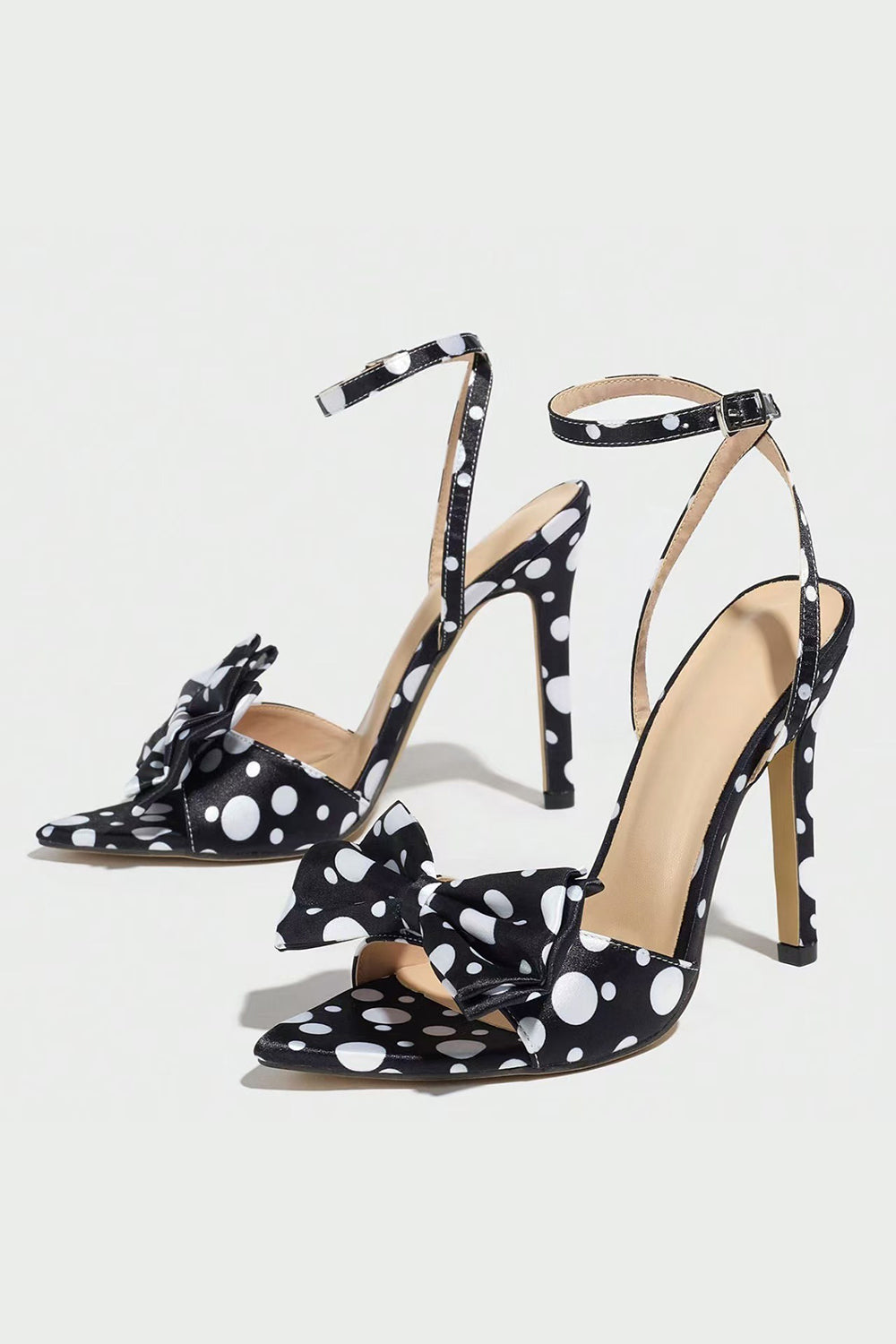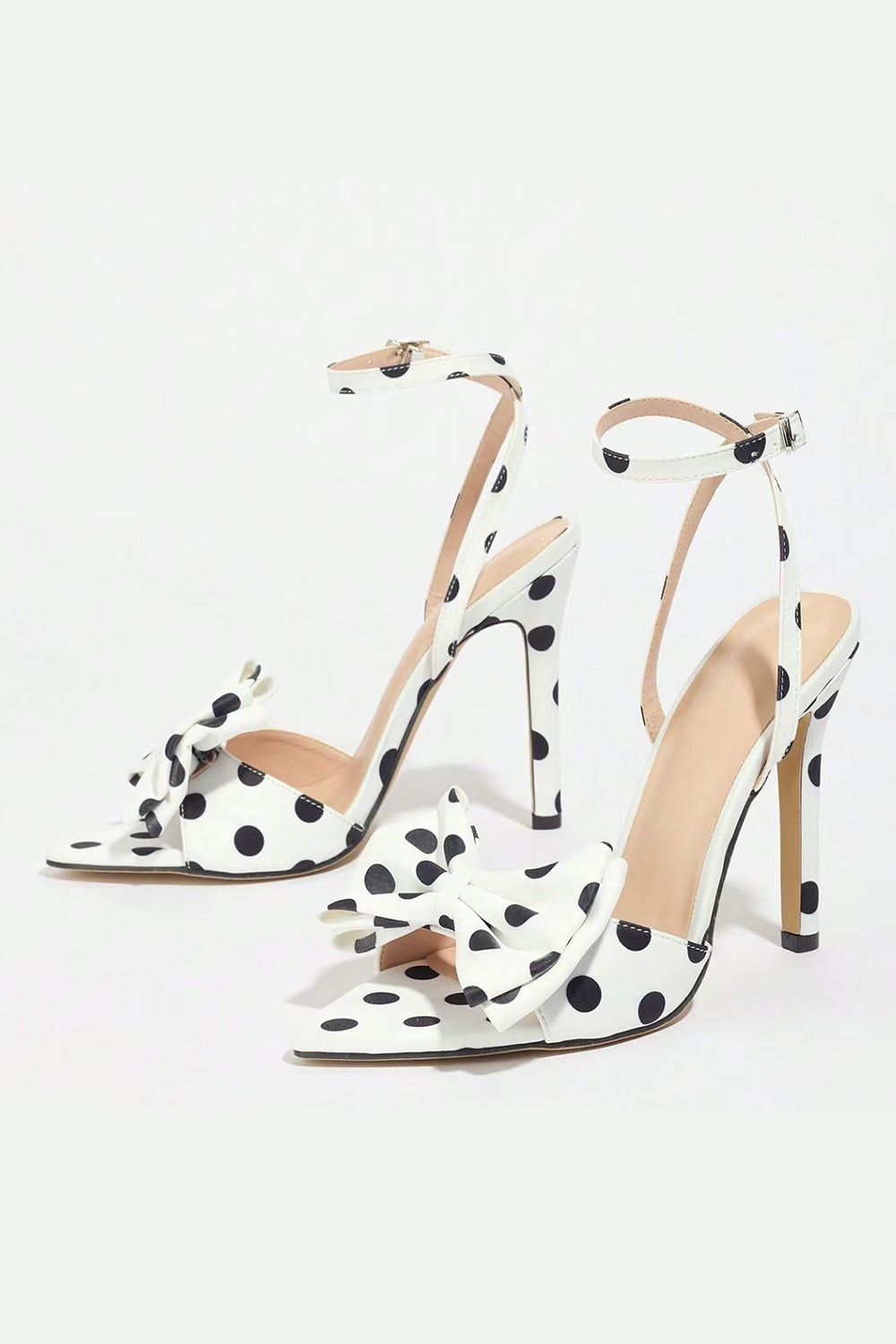 White Black Polka Dots Open Toe Stilettos High Heels with Bow