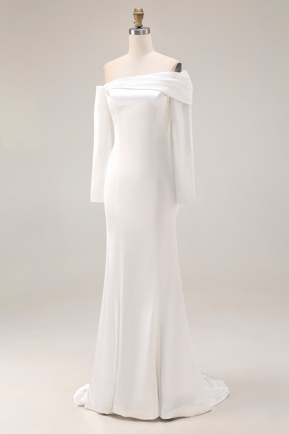 White Mermaid Off The Shoulder Wedding Dress with Long Sleeves