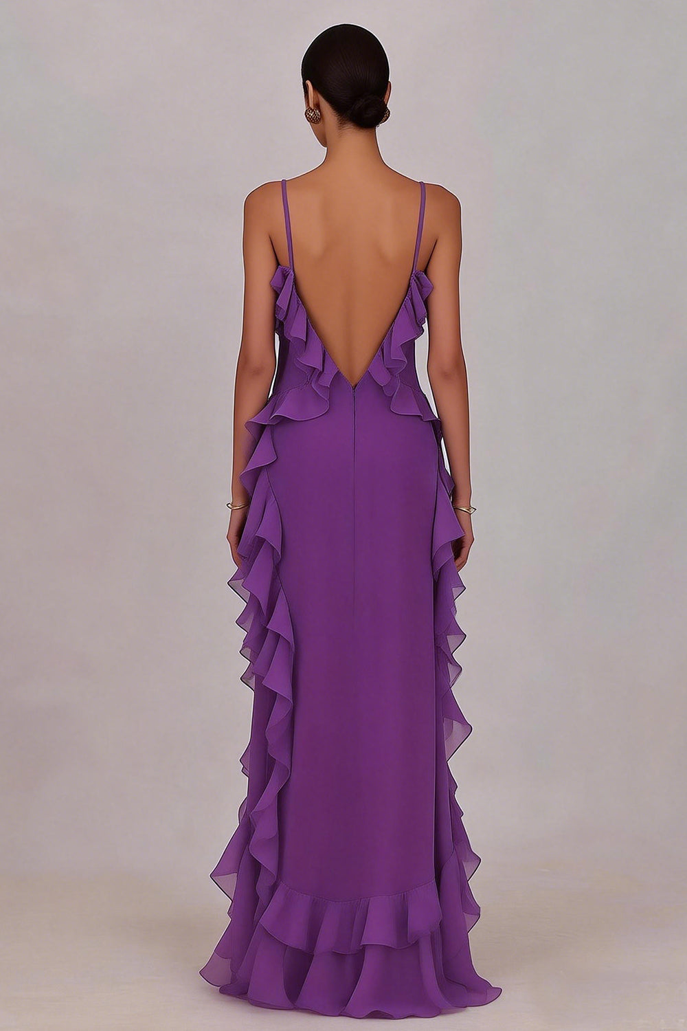 Sheath Ruffled Chiffon Long Plum Dress with Slit