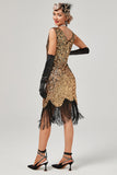 Dark Green Sequined V-Neck Gatsby Dress With Fringes