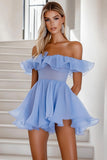 Sky Blue A Line Square Neck Mini Cocktail Dress