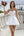 White Spaghetti Straples Ruffled Graduation Dress with Slit