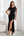 Black Strapless Sparkly Bows Velvet Long Formal Dress With High Slit (Not Gloves)