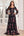 A Line Long Sleeves Floral Print Black Long Prom Dress