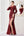 Burgundy Sequined Long Sleeves Evening Dress with Slit