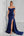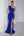 Navy Satin Square Neck Sheath Long Prom Dress with Slit