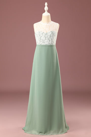 Matcha A-line Floor Length Round Neck Sleeveless Junior Bridesmaid Dress