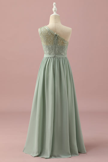 Green One Shoulder Lace and Chiffon Junior Bridesmaid Dress