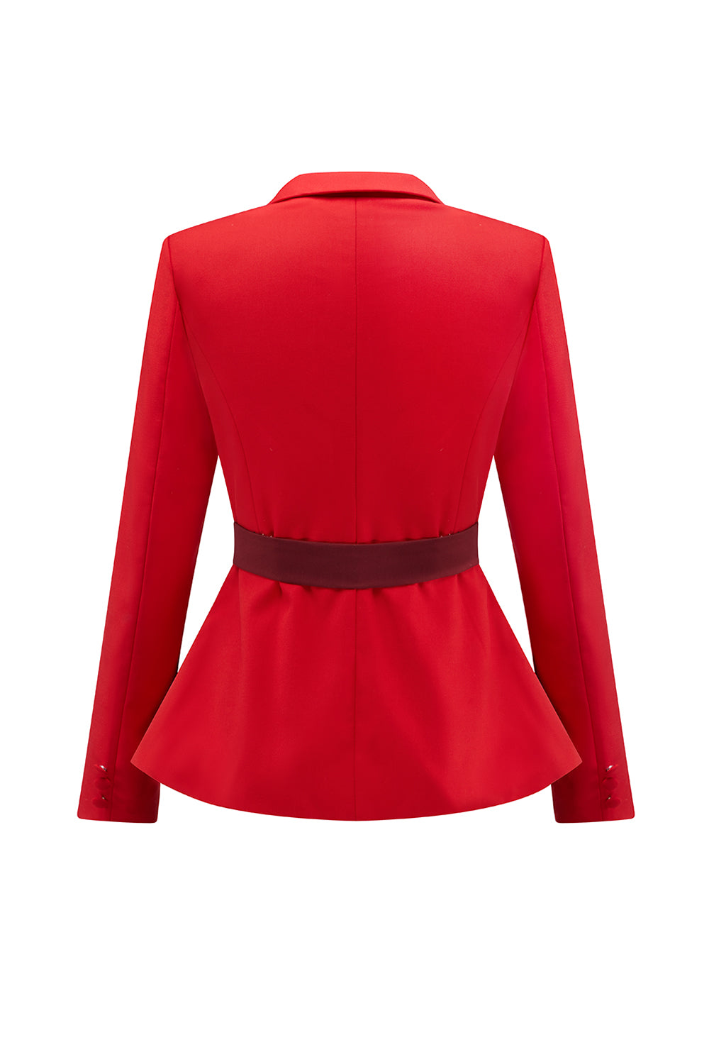 2-Piece Red Patchwork Notched Lapel Women Prom Suits with Belt