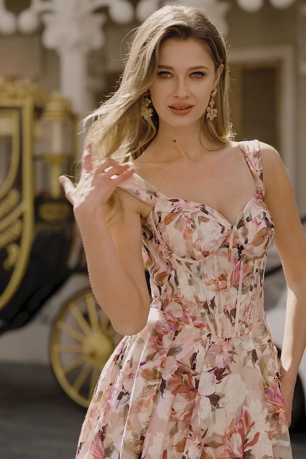 Off The Shoulder Floral A-Line Corset Desert Rose Long Prom Dress