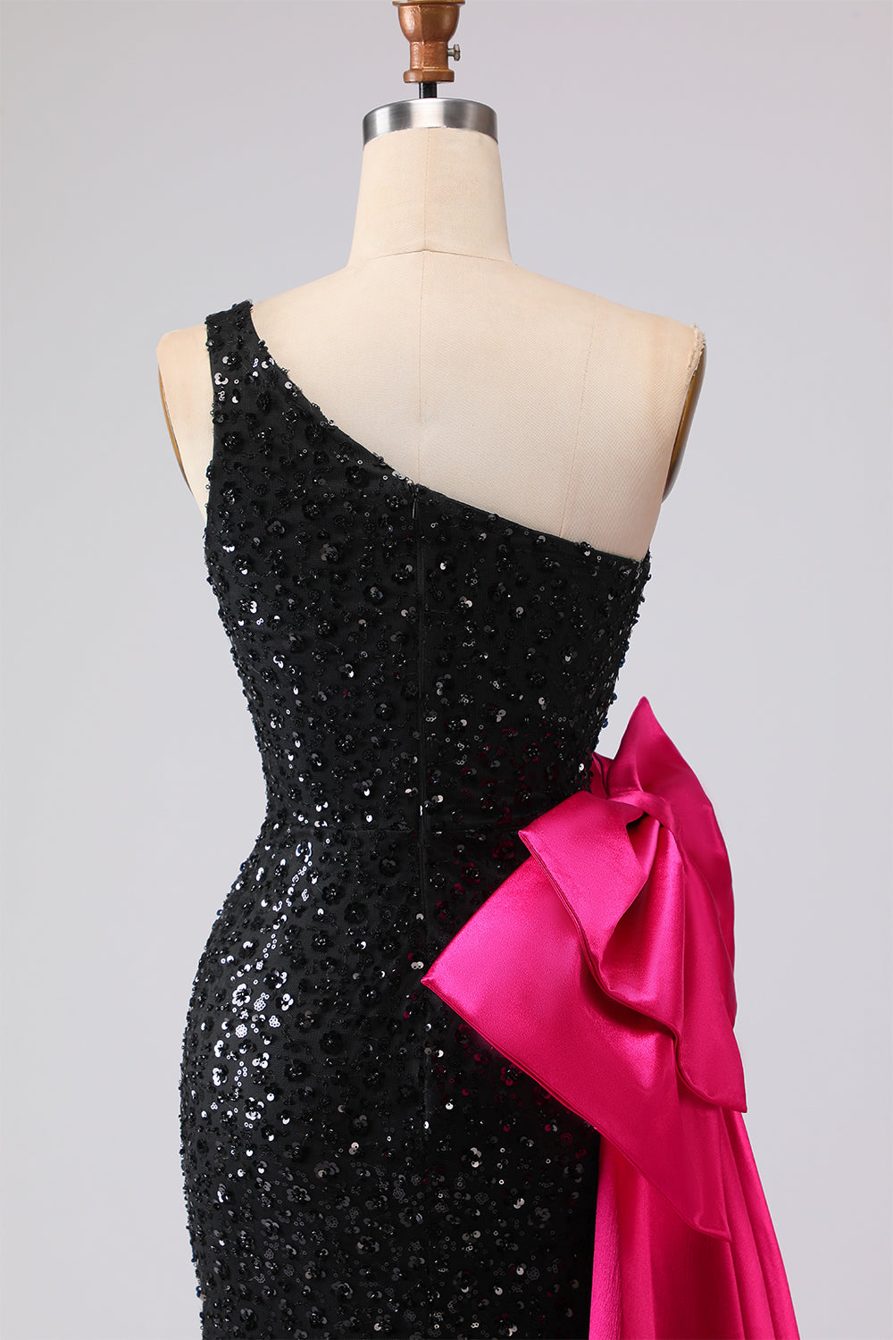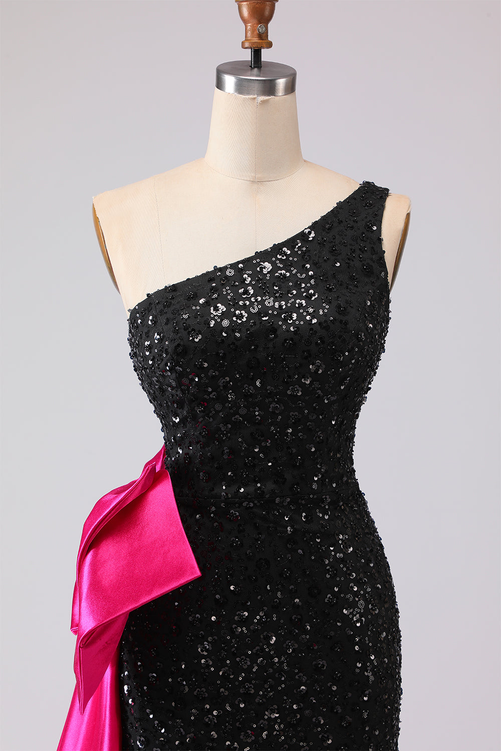 Sparkly One Shoulder Black Mermaid Sequin Long Prom Dress with Bow