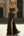 Black Golden Floral A-Line V-Neck Long Prom Dress with Streamer