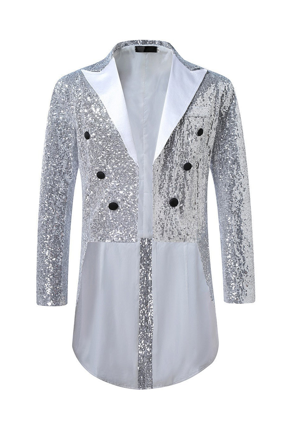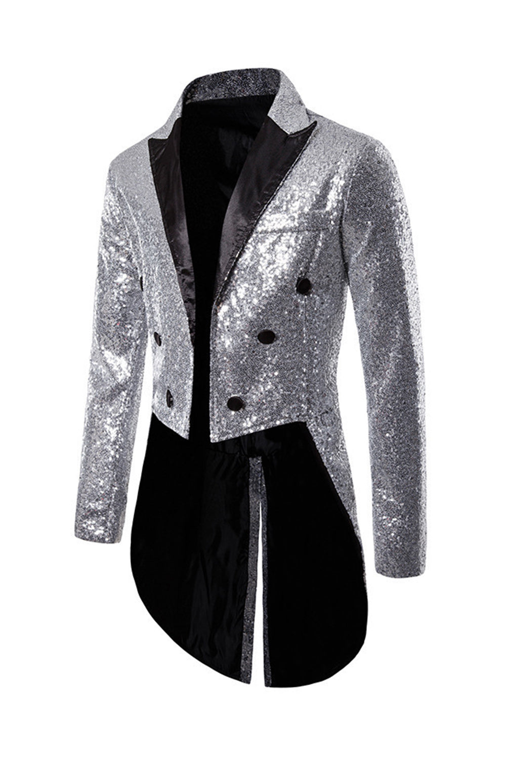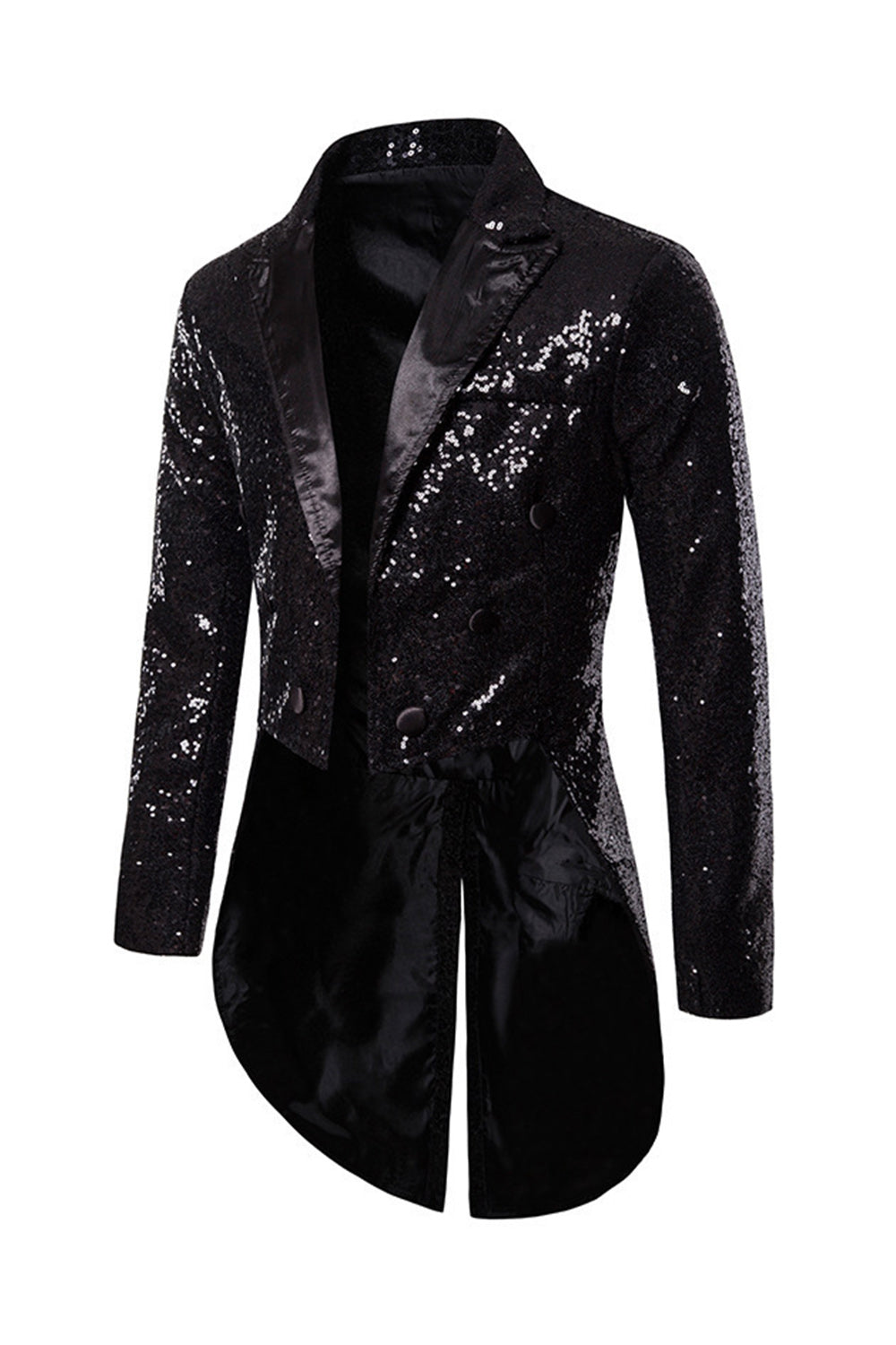 Black Sequin Peaked Lapel Double Breasted Men's Tuxedo Tailcoat