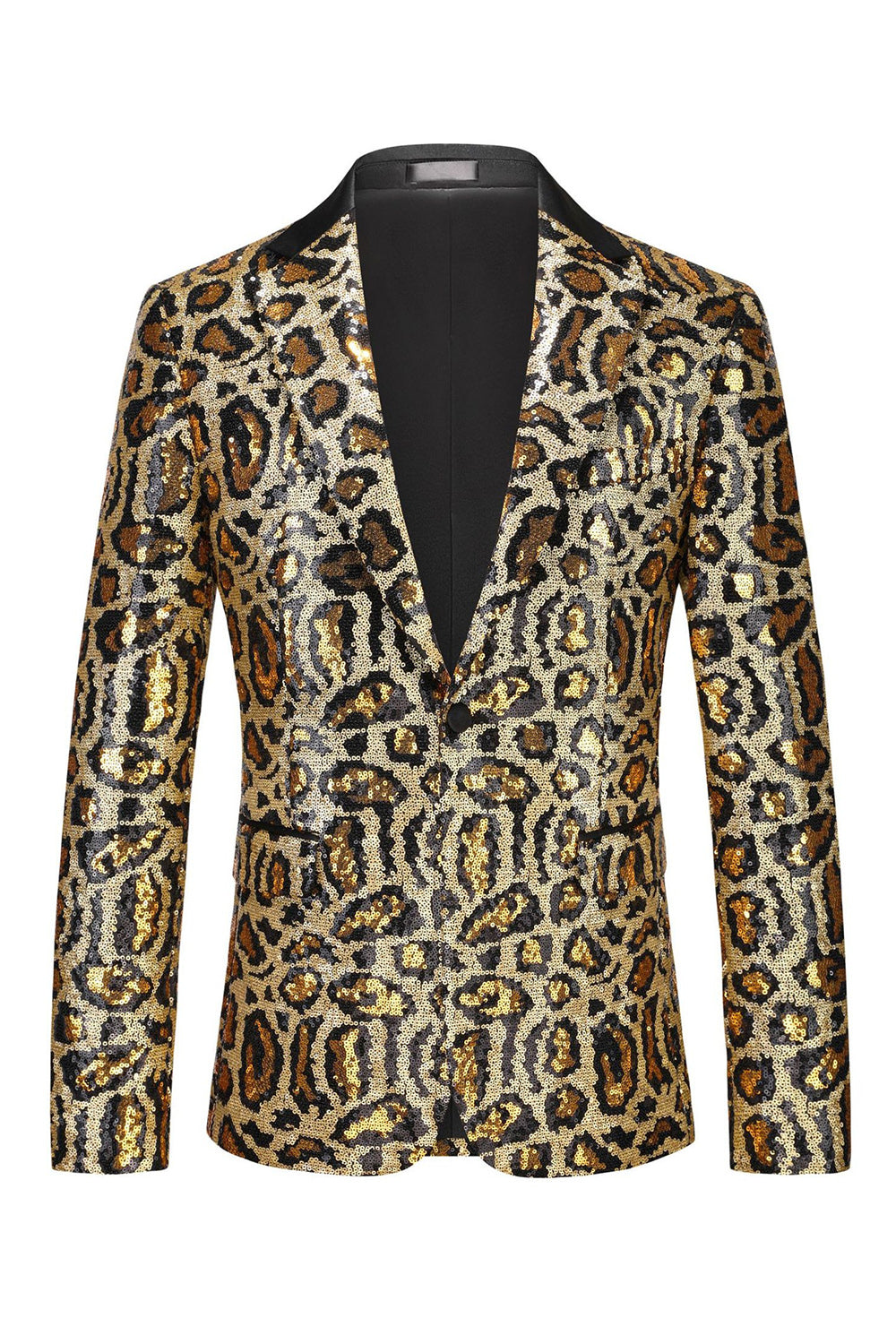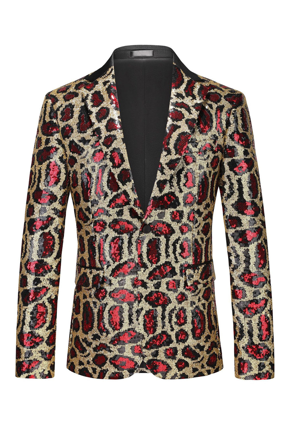 Sparkly Burgundy Leopard Sequin Peak Lapel Single Breasted Men' Blazer