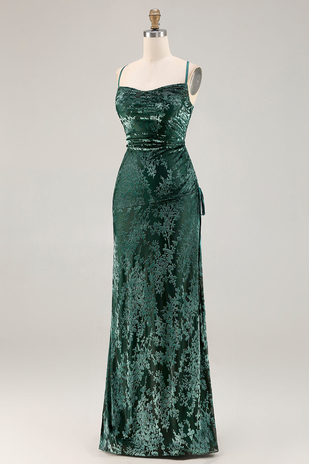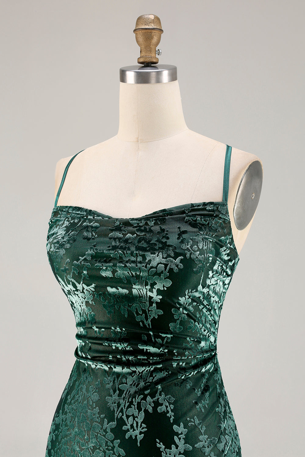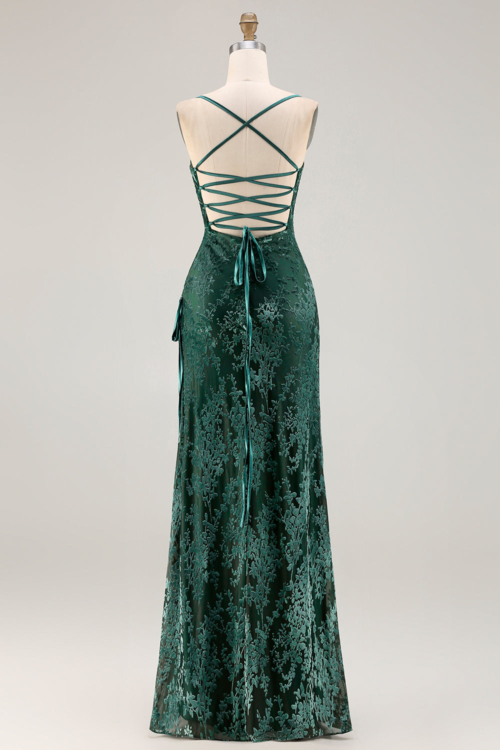 Dark Green Velvet Sheath Velvet Burnout Long Prom Dress