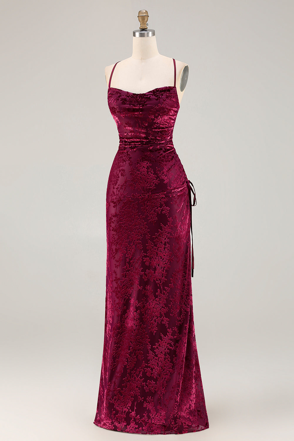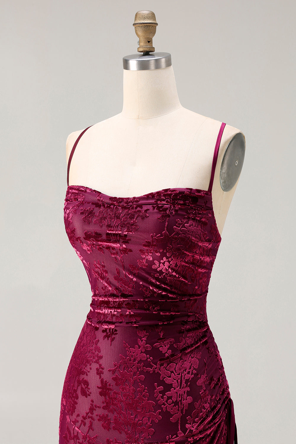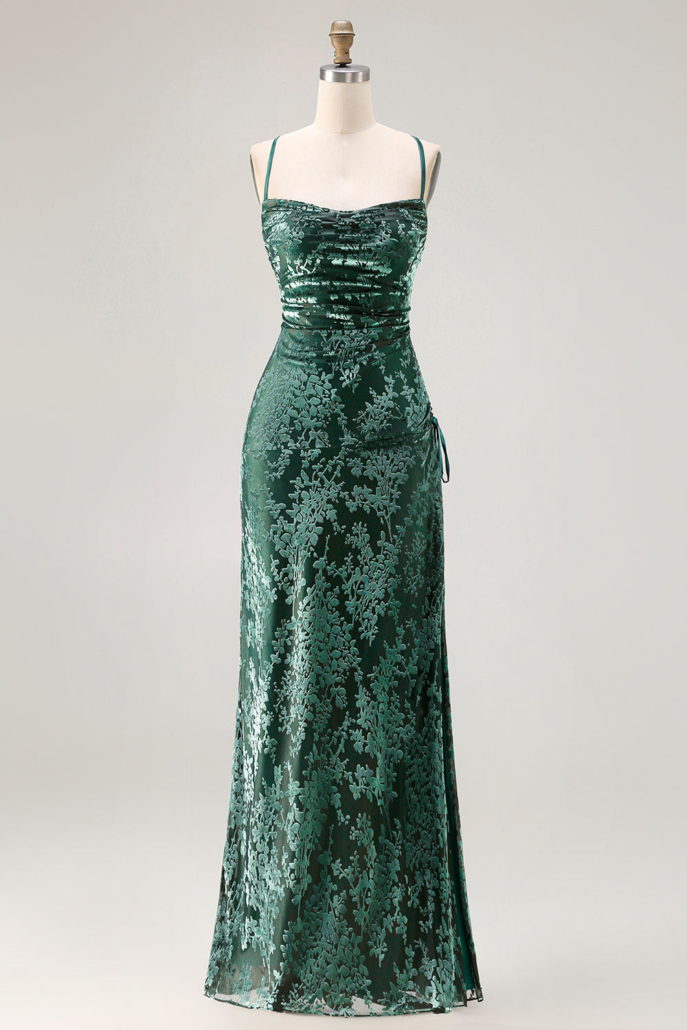 Dark Green Velvet Sheath Velvet Burnout Long Prom Dress