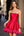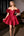 Red Floral Square Neck A Line Wedding Guest Dress