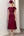Red Lapel Belt Tea Length Wedding Guest Dress with Short Sleeves
