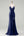 Royal Blue A Line Deep V-Neck Metallic Prom Dress with Floral Shoulder Detail