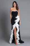 Black and White Strapless Tiered Mermaid Long Formal Dress with Ruffles