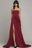 Black Strapless A Line Ruched Long Formal Dress with Slit