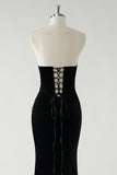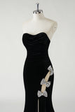 Black Strapless Velvet Sparkly Bows Long Formal Dress With High Slit (Not Gloves)