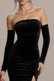 Black Velvet Strapless Mermaid Long Formal Dress with Slit