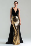 Gold and Black Mermaid Spaghetti Straps Velvet Long Formal Dress