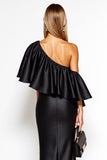 One Shoulder Sheath Black Formal Dress with Ruffles