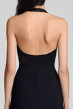 Sheath Halter Cut Out Black Long Formal Dress