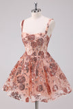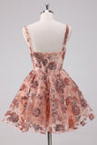 Glitter Blush A-Line Spaghetti Straps Sequins Tulle Corset Homecoming Dress