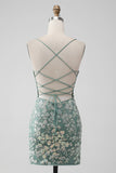 Grey Green Bodycon Lace-up Back Short Homecoming Dress with Sequin Appliqued