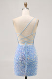 Sparkly Blue One Shoulder Short Homecoming Dress with Slit