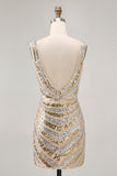 Sparkly Bodycon Sequins V-Neck Golden Short Homecoming Dress