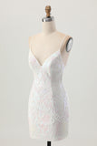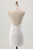 Sparkly White Bodycon Backless Sequin Short Homecoming Dress