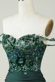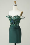 Unique Sheath Off the Shoulder Dark Green Short Homecoming Dress with Appliques