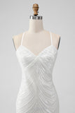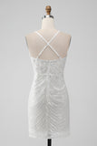 White Sequins Bodycon Short Homecoming Dress with Criss Cross Back