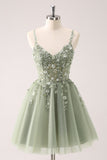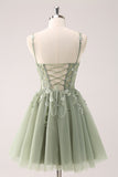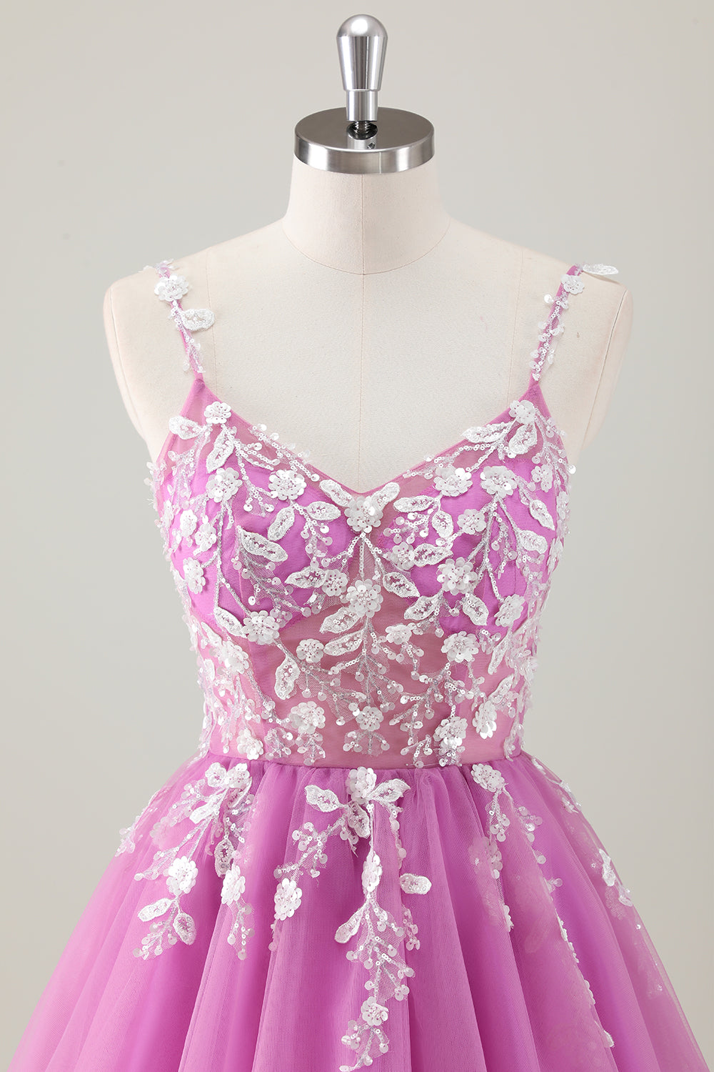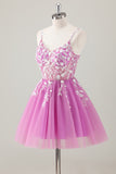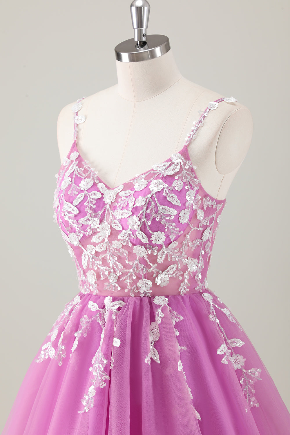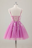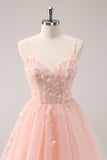 A Line Blush Spaghetti Straps Tulle Corset Sequins Homecoming Dress with Appliques