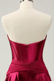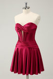 Burgundy A Line Sweetheart Strapless Keyhole Satin Homecoming Dress