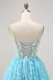 Blue A Line Appliques Butterfly Corset Short Homecoming Dress