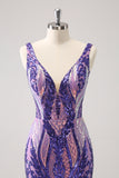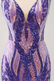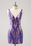 Glitter Fuchsia V Neck Tight Backless Short Homecoming Dress with Sequins