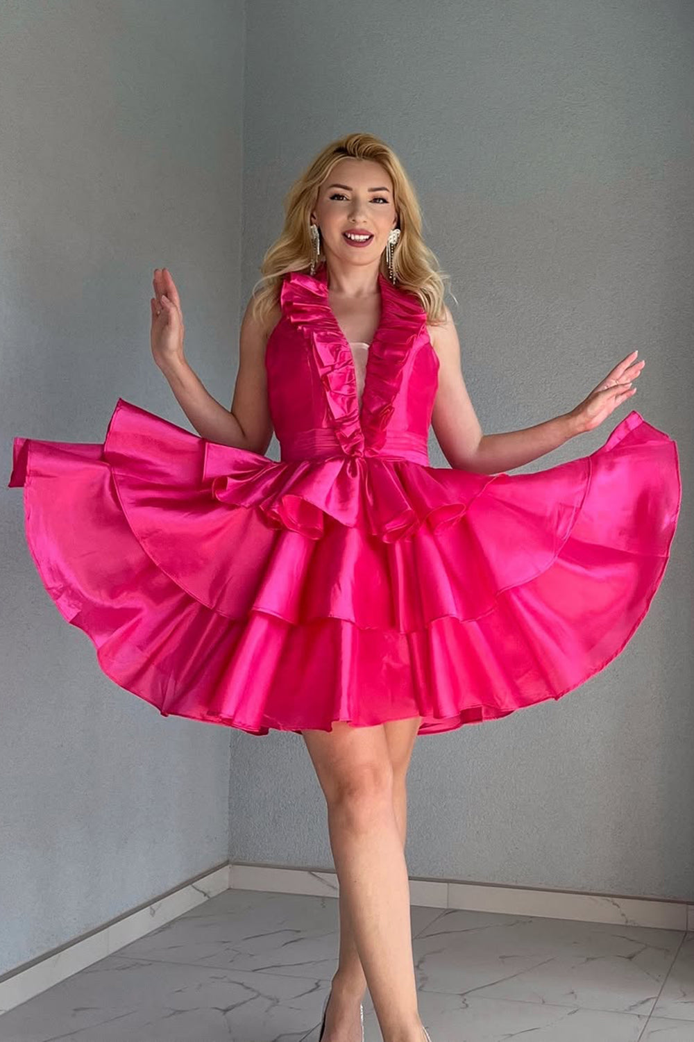 Royal Blue A-Line Halter Tiered Short Homecoming Dress with Ruffles