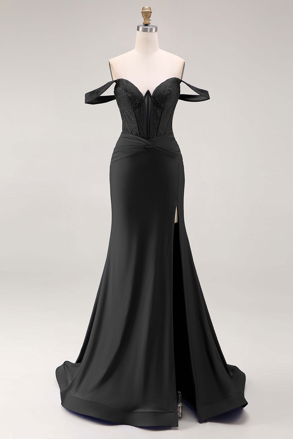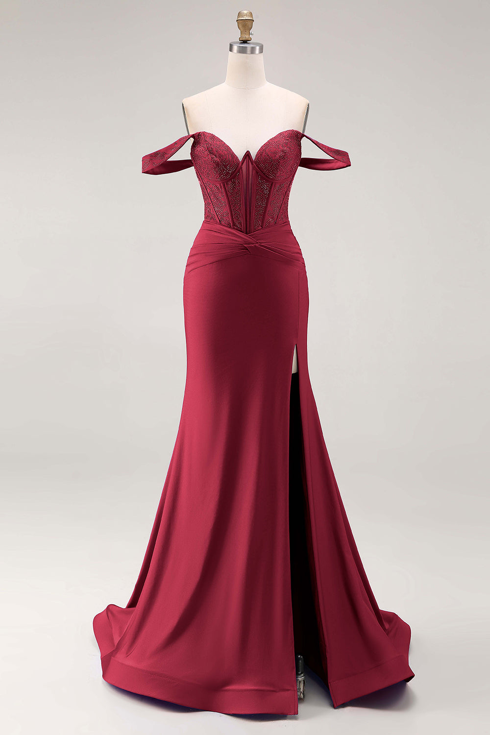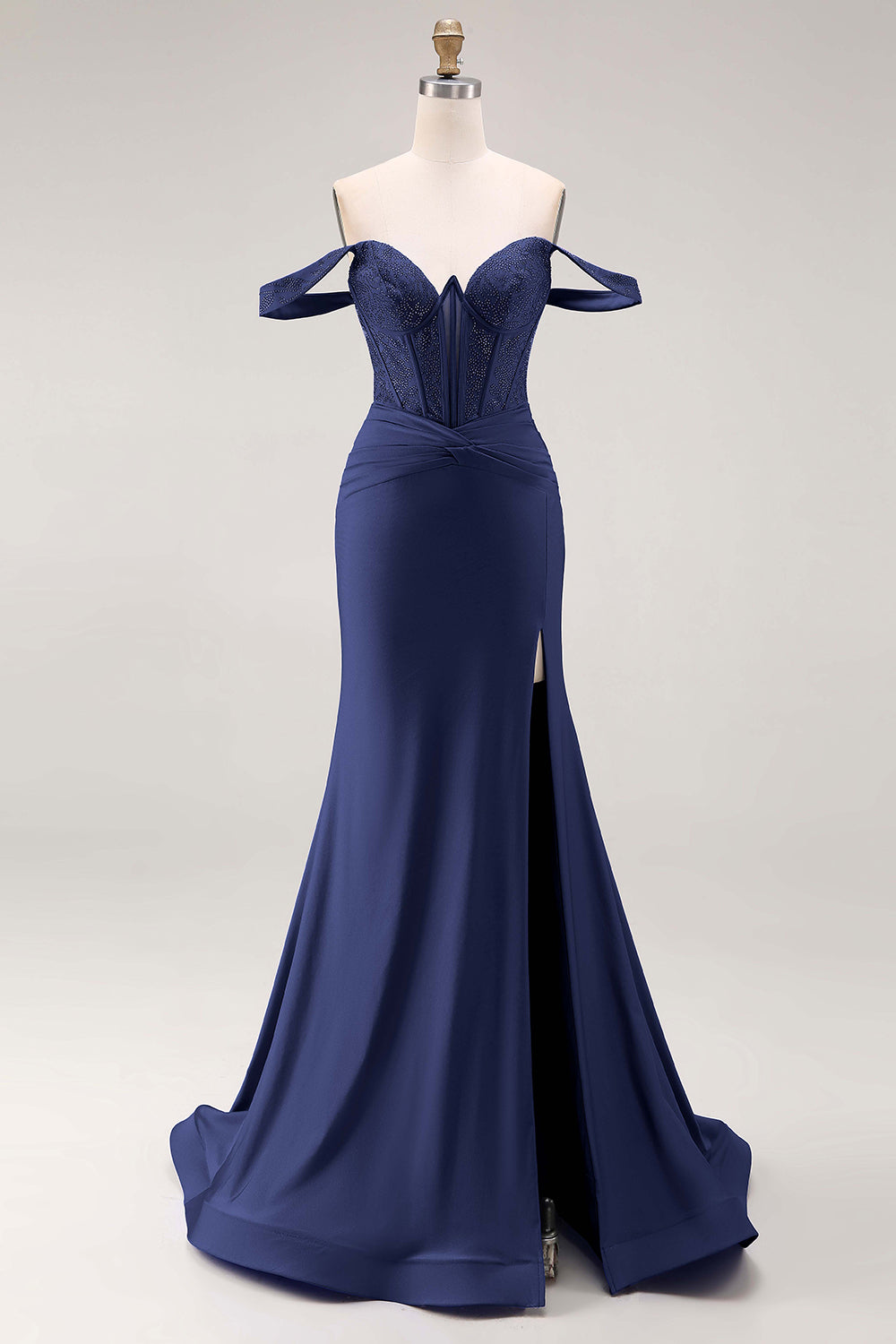 Royal Blue Beaded Corset Mermaid Off the Shoulder Long Prom Dress with Slit