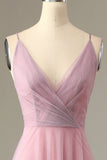 A Line Spaghetti Straps Grey Pink Bridesmaid Dress