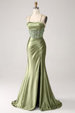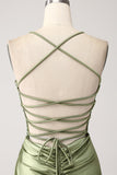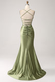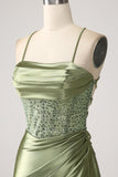 Army Green Mermaid Cowl Neckline Sequin Long Prom Dress With Slit
