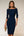 Navy Bodycon Bateau Neck Midi Work Dress with 3/4 Sleeves