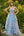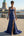 Blue A-Line Floral Tiered Ruffle Corset Long Prom Dress with Slit