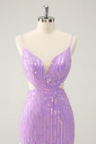 Glitter Purple Tight Sequined V Neck Short Homecoming Dress